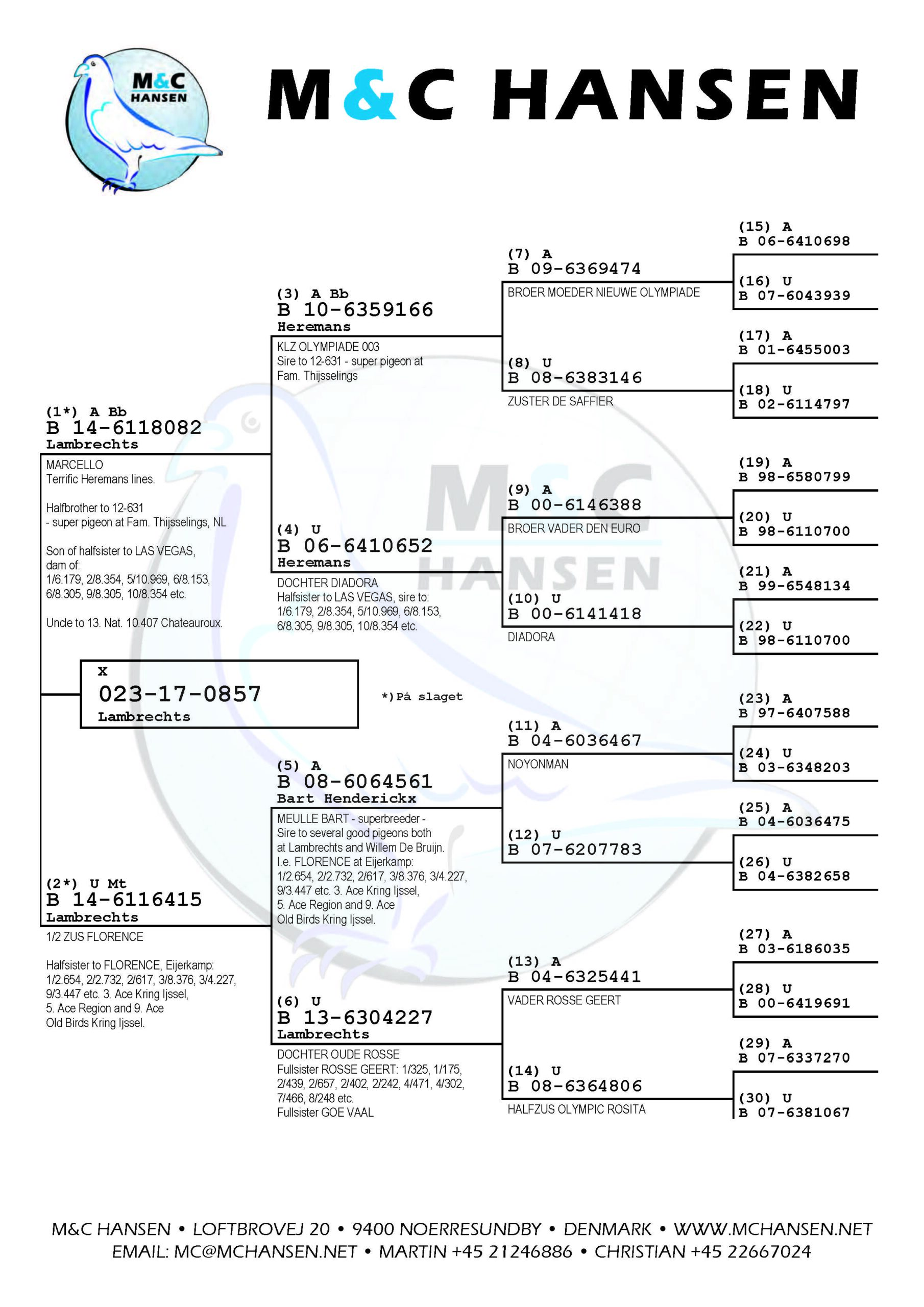In the middle of Denmark they already start racing in week 17 – and our good friend Johs. Markussen started with a blast and won the race against 1.879 pigeons – his second pigeon – ending as 2nd against 1.879 p. is a pigeon from us – pure Lambrechts!