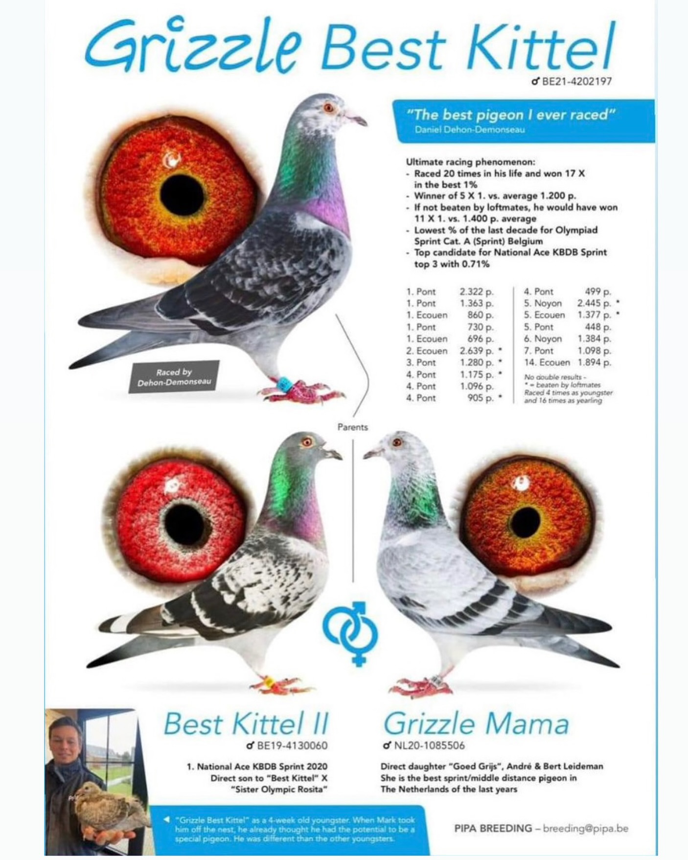 According to Daniel Dehon-Demonseau, the best pigeon he has ever raced.