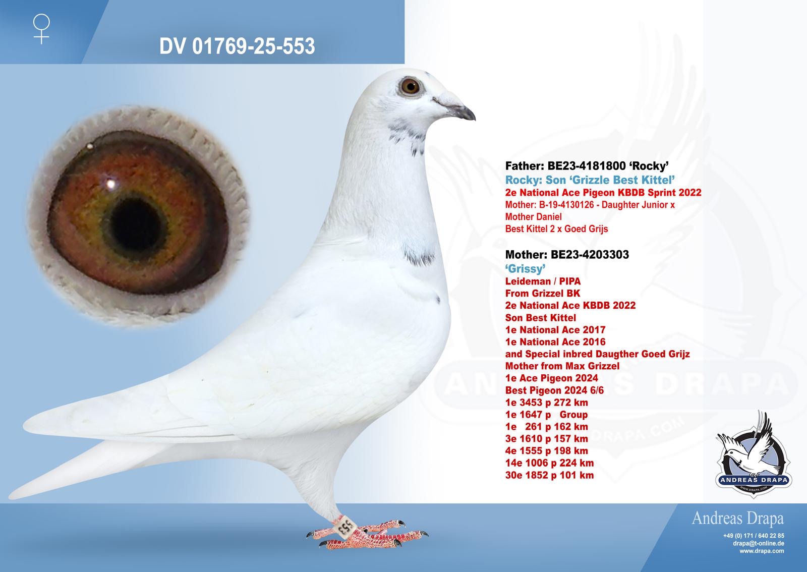 1. Dutch Olympiad bird cat. G 2023 ‘Olympic Femke’ at Foppe Van Der Meer