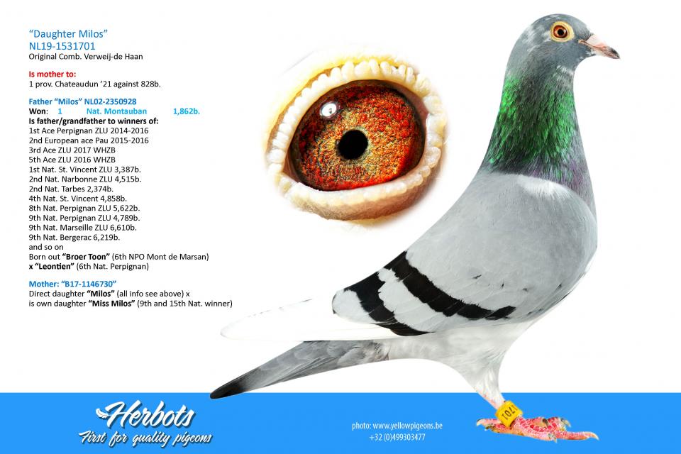 24. Nat. Bergerac YL – 2,104 birds 2019 (‘Kikki’ g.child at Verweij-De Haan)