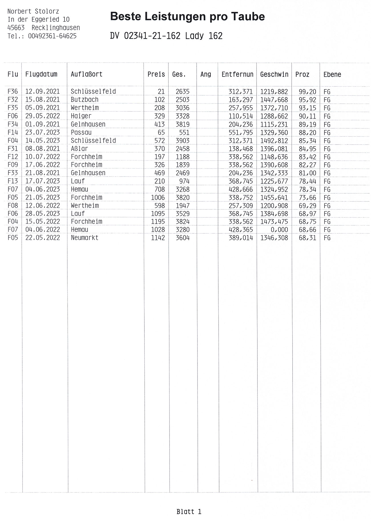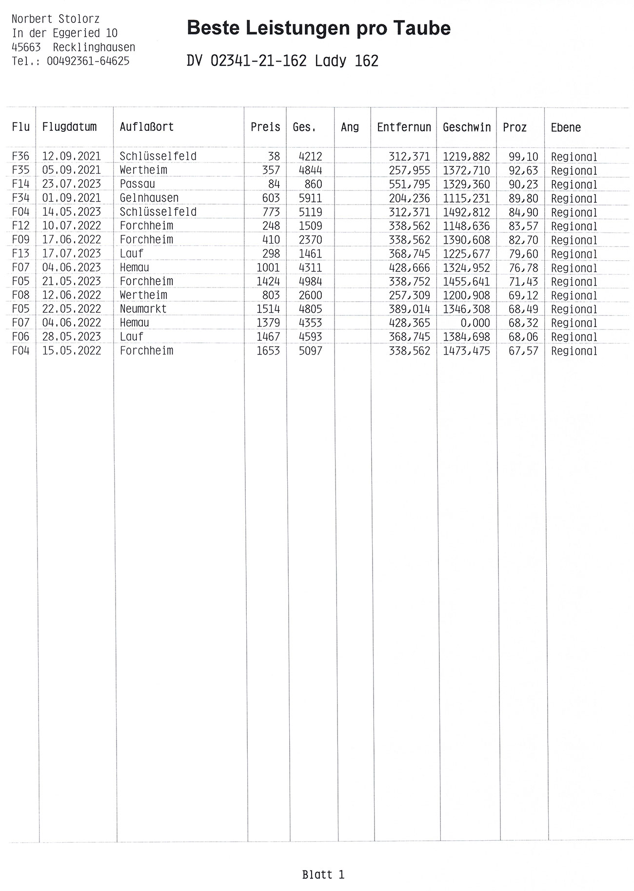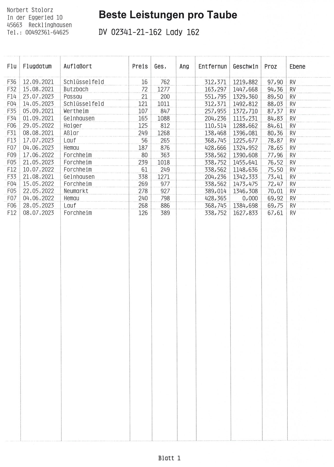 33. prize 668 birds Union Yearling 338 Km Forchheim