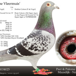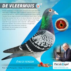 He is a son of DE VLEERMUIS from Piet de Vogel – one of many acepigeon from Piet:
