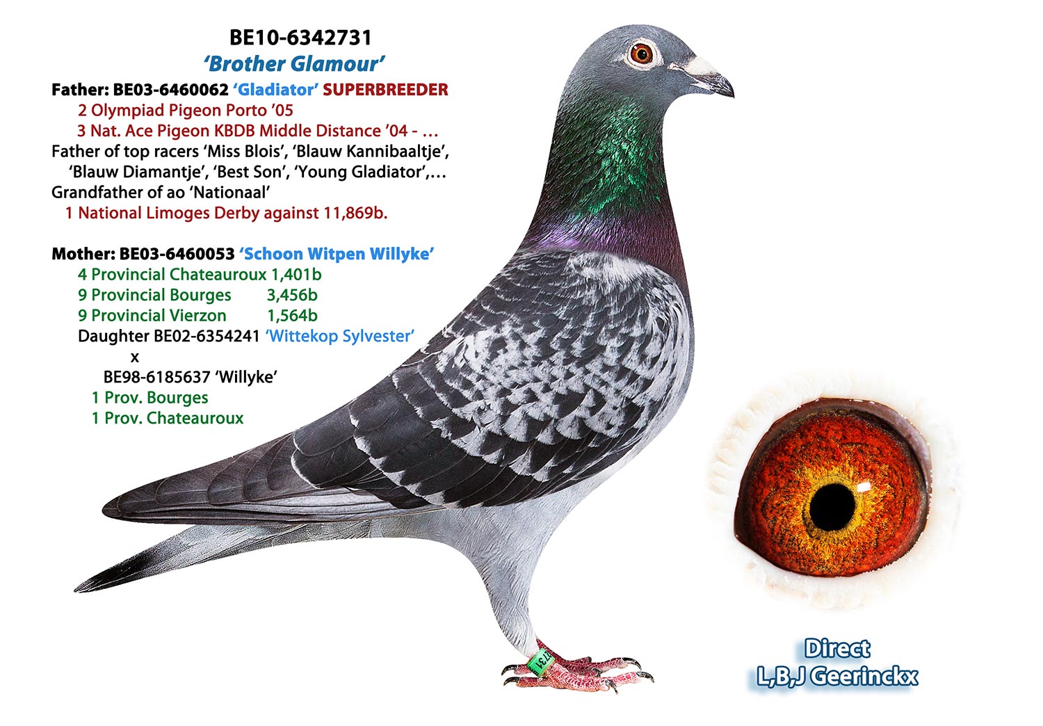 – ACY: 1. Olympic Pigeon Longdistance 2015, 2. Nat. Acepigeon KBDB GMD 2013, 1. Nat. Zone Bourges, 1. Nat. Zone Chateauroux, 2. Nat. Zone Montlucon, 3. Nat. Zone Argenton, 3. Nat. Zone Tulle etc.!!!