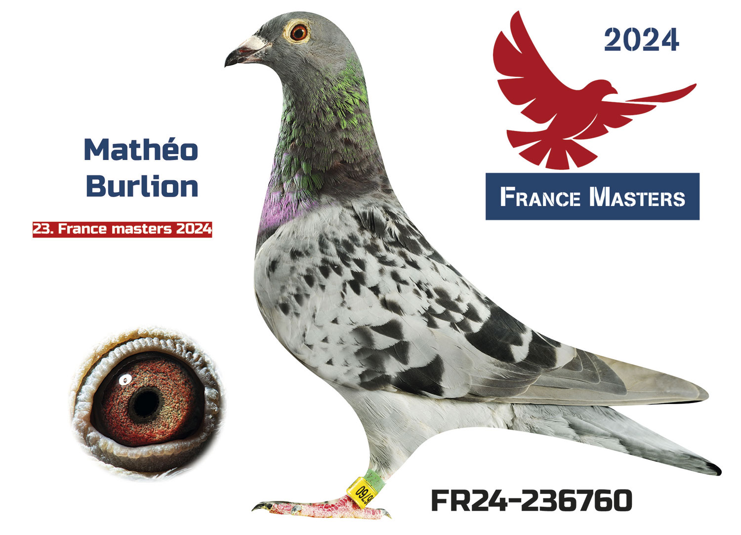 Burlion, a large family of pigeon fanciers from the North of France. It ranks three pigeons at the top of the France Masters 2024 and this is no coincidence when reading the pedigrees, as with the 236760, 23rd in the selective final on Argenton. With the Odiot and the Dehen, the paternal branch shone on Barcelona with the Deschamps and Ballman blood. It is just as breathtaking by the maternal branch with the Nijs, breeder n°1 of the Odiot family and the Survivant of the Deschamps brothers, best international pigeon on Barcelona 2012-2015.