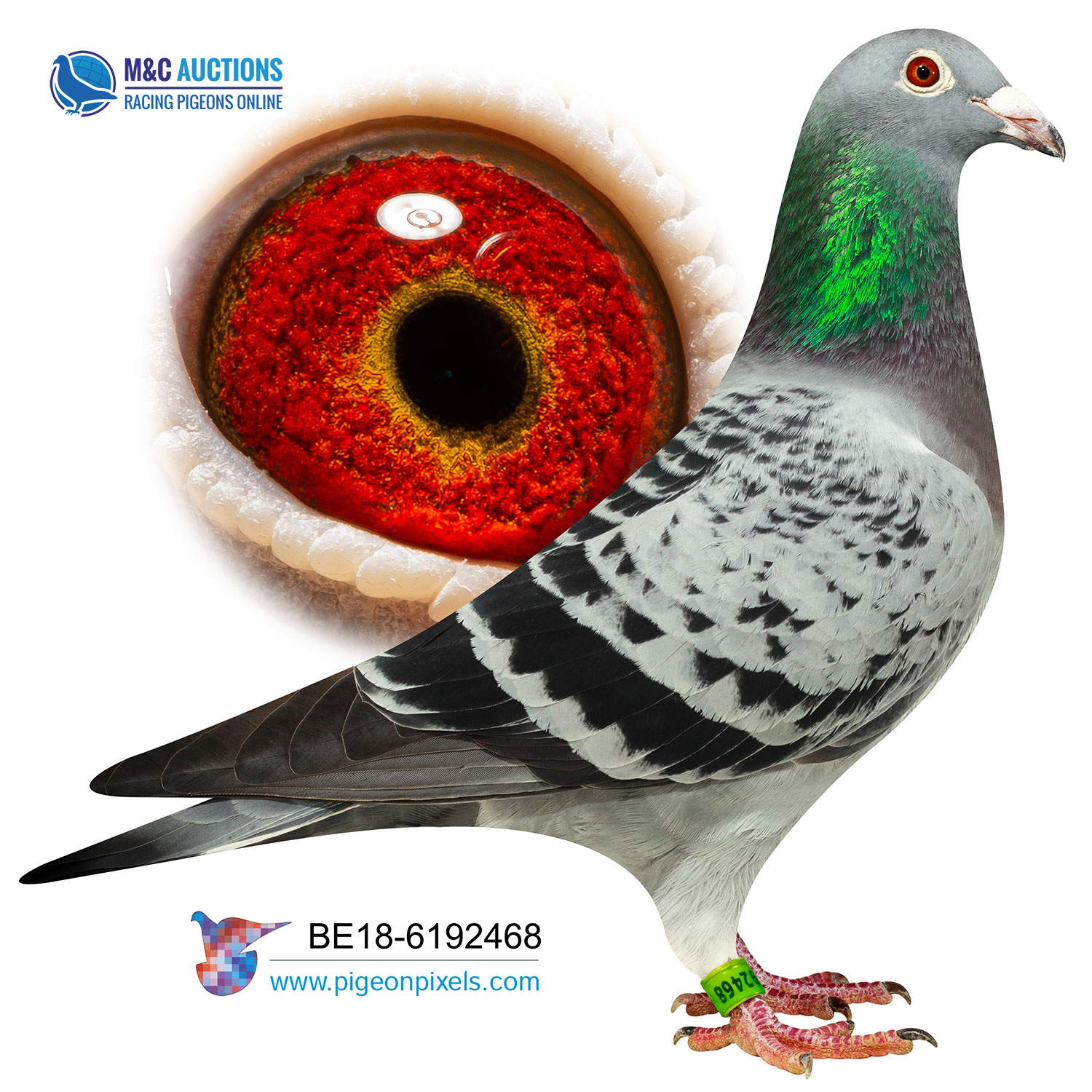 He is bred from BE08-6168421 x BE07-6360106. 8421 was a super racer and breeder. He was 1. Ace-pigeon 2010, winning 7 x 1, 3 x 2, 3 x 3. He is coming from the bloodlines of Paul Mens and Rene Verdonck.