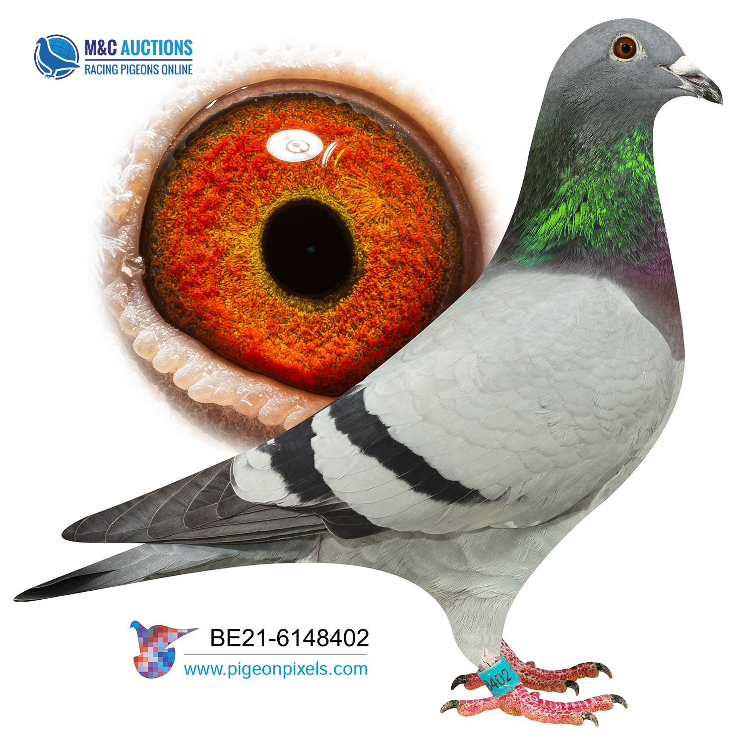 He is bred from BE08-6168421 x BE07-6360106. 8421 was a super racer and breeder. He was 1. Ace-pigeon 2010, winning 7 x 1, 3 x 2, 3 x 3. He is coming from the bloodlines of Paul Mens and Rene Verdonck.