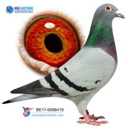He is bred from BE08-6168421 x BE07-6360106. 8421 was a super racer and breeder. He was 1. Ace-pigeon 2010, winning 7 x 1, 3 x 2, 3 x 3. He is coming from the bloodlines of Paul Mens and Rene Verdonck.