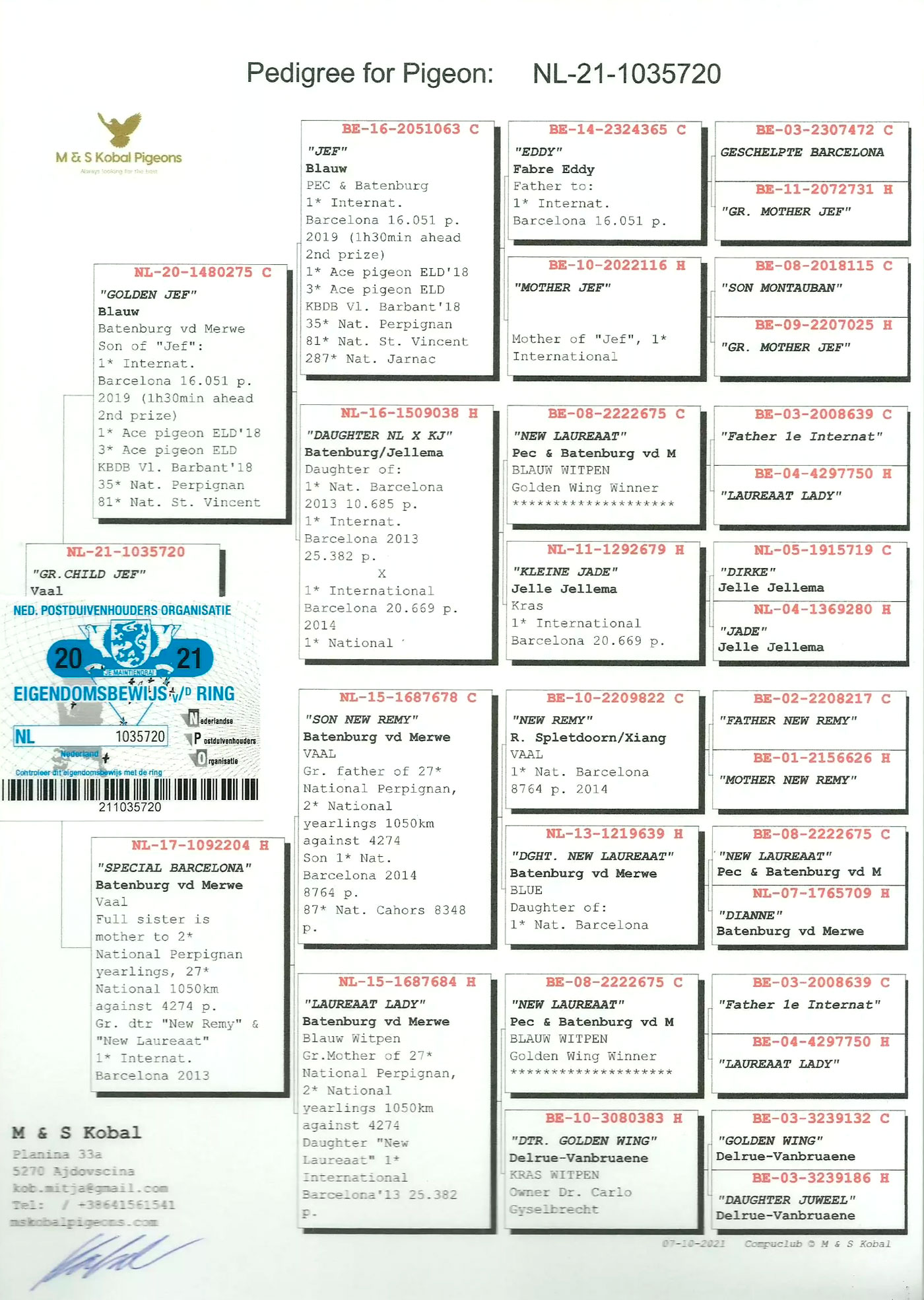 Daughter of 1. Acepigeon Fondclub Antwerp with 5 x Top 100 National including 36. National Chateauroux 27.081 pigeons!