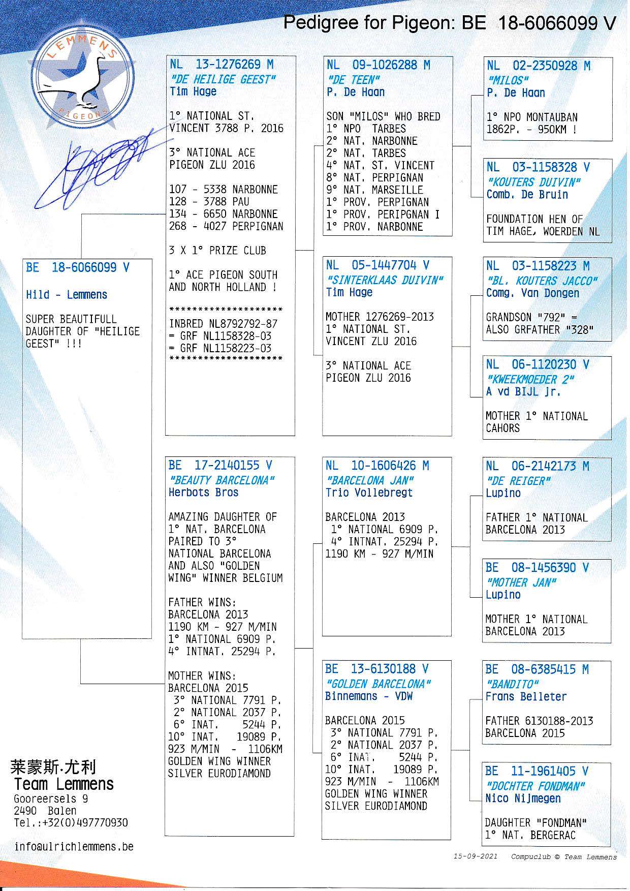 Dam: BE-18-6066099 DAUGHTER HEILIGE GEEST, Org. Hild-Lemmens