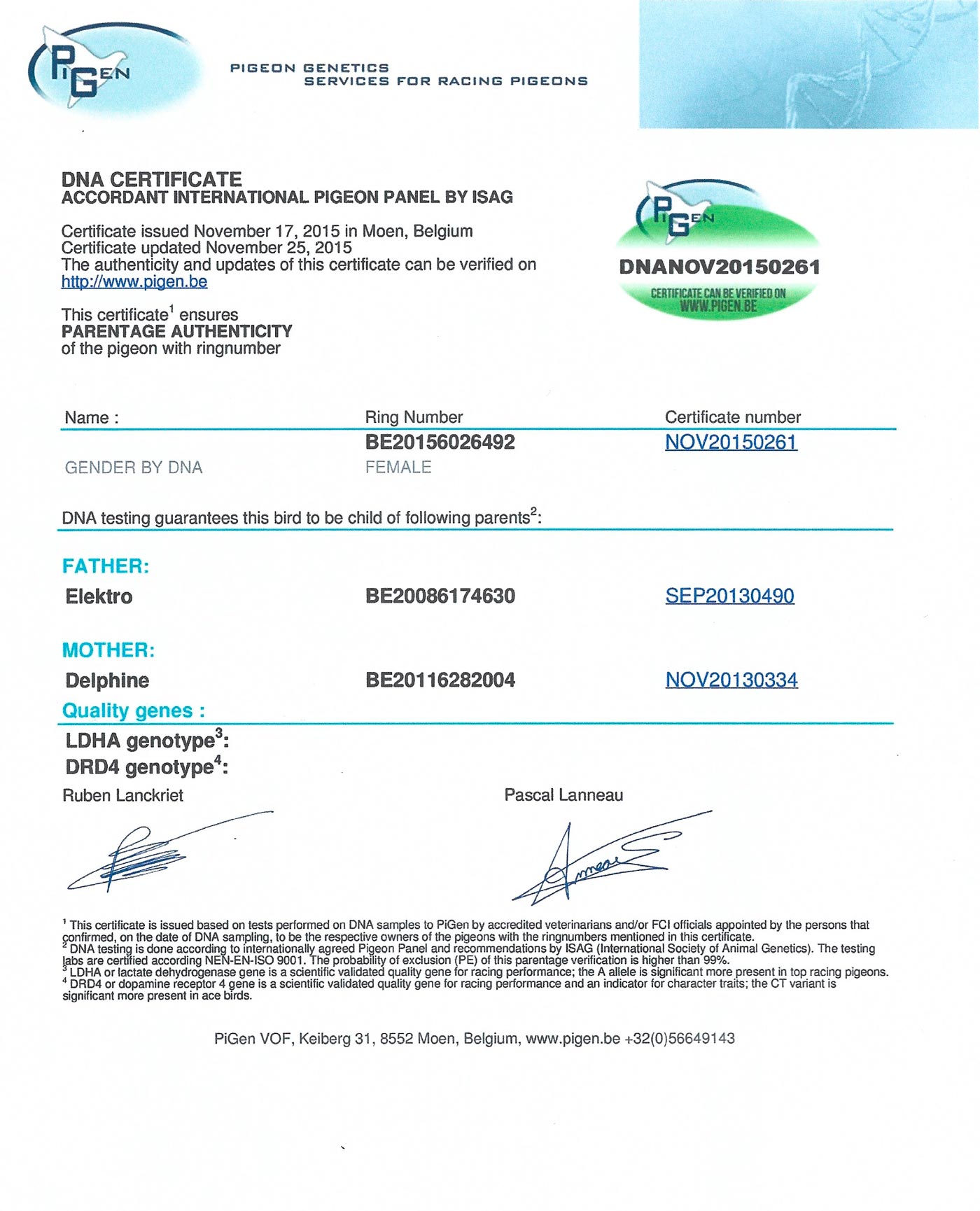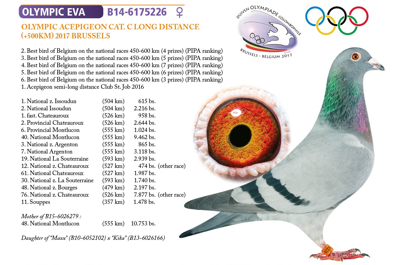 OLYMPIC ELEKTRO: 1. Olympic Pigeon Brussels 2017, 1. National Ace MD 2016 etc.