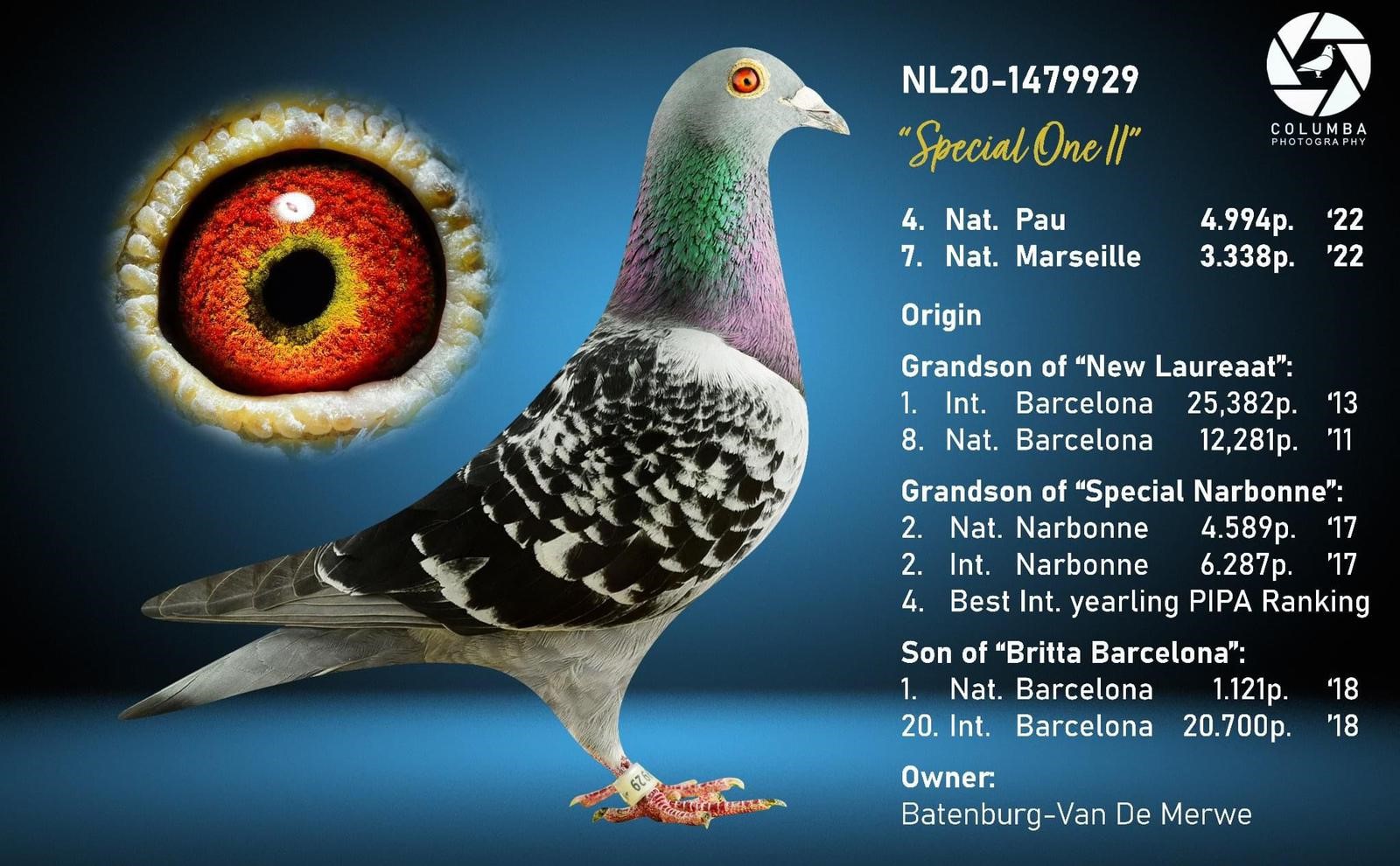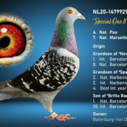 1. National winner Angeloume 2018 652 km 1059 m/min. 17 min. lead 9.555 pigeons!!