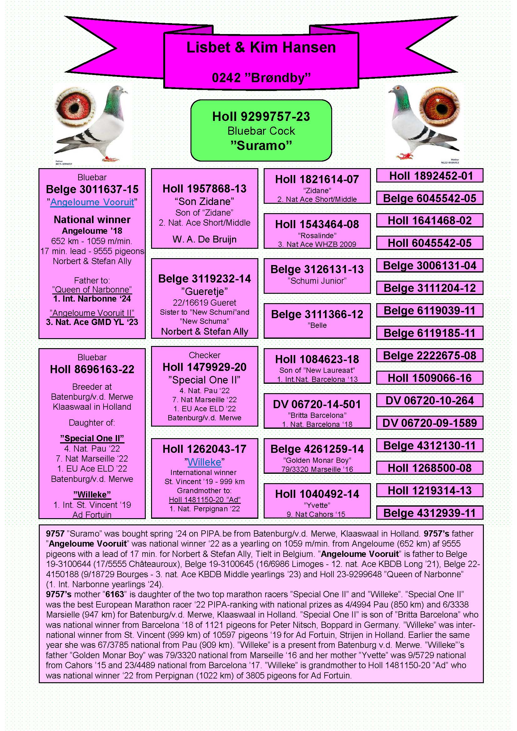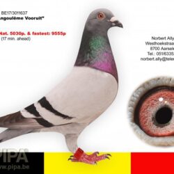 National winner Angeloume ’18 652 km -1059 m/min. 17 min. lead -9555 pigeons!!