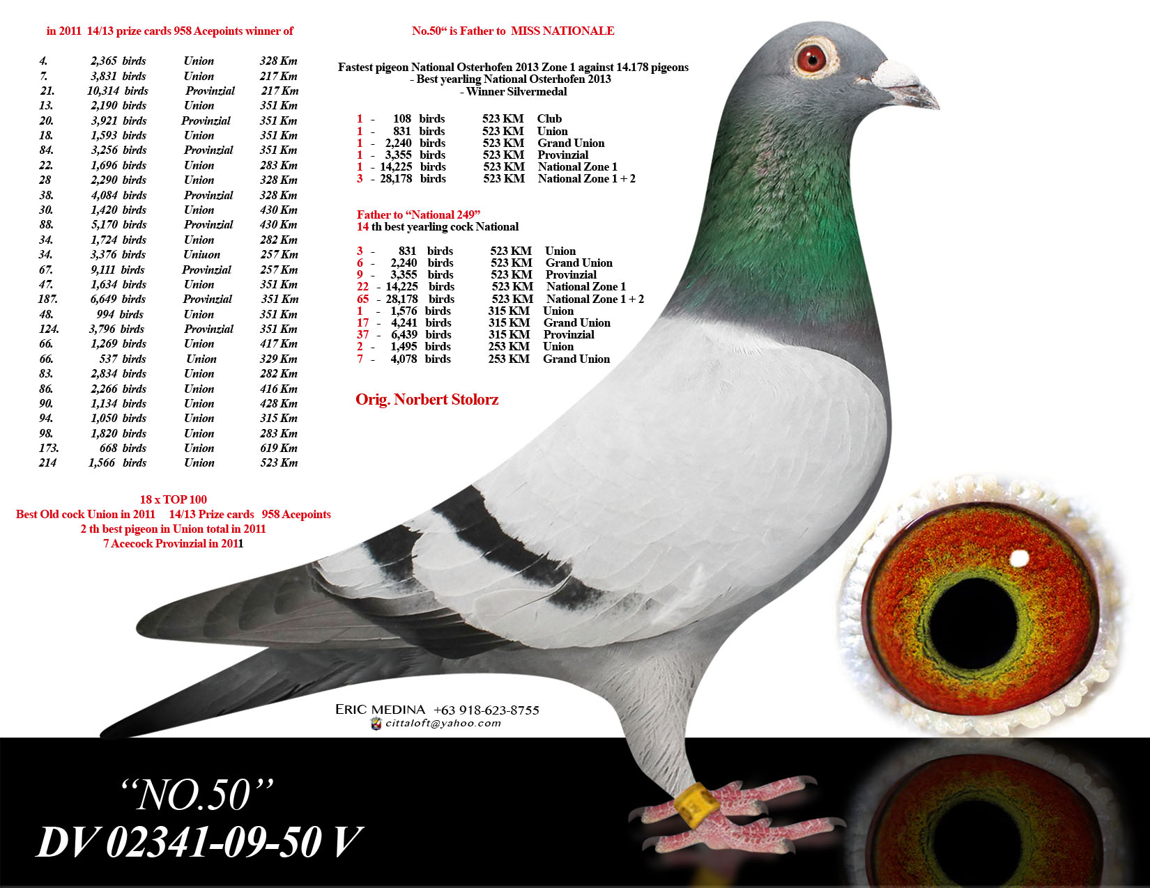 8. prize 473 birds Union Yearling list 389 Km Neumarkt