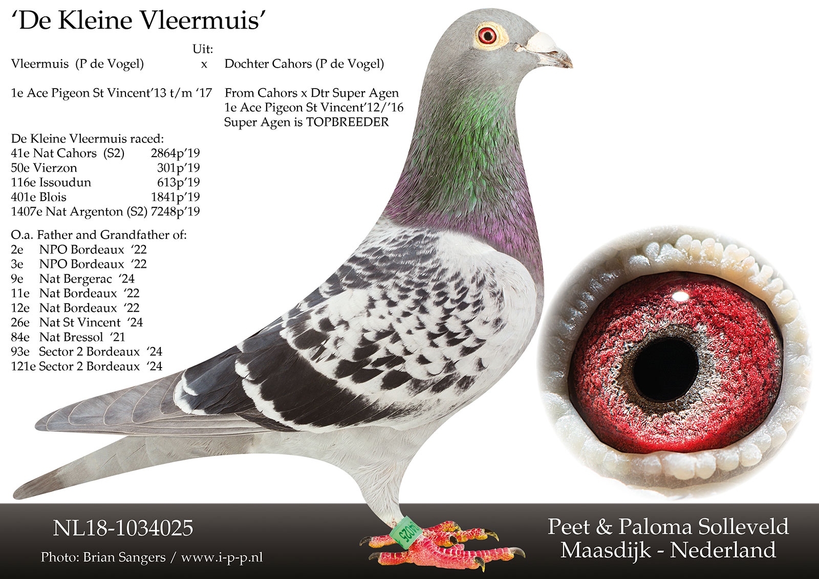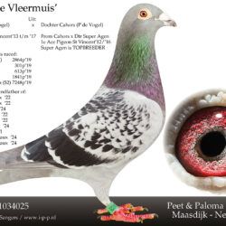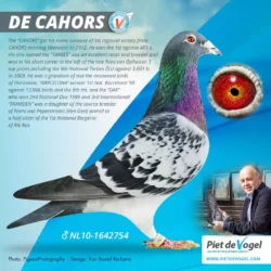 The dam LADY CAHORS is from co-breeding with Piet De Vogel – the superpigeon DE CAHORS: