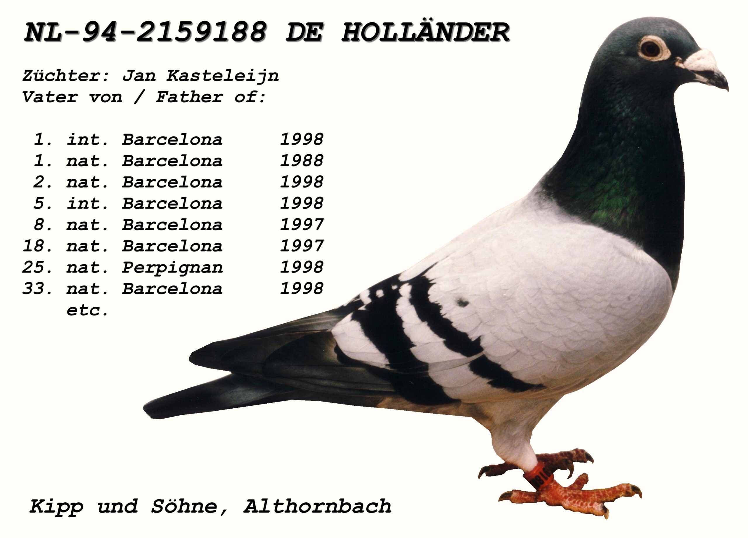 He is a grandson of the legendary DE HOLLANDER! He is sire to: