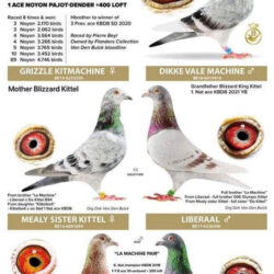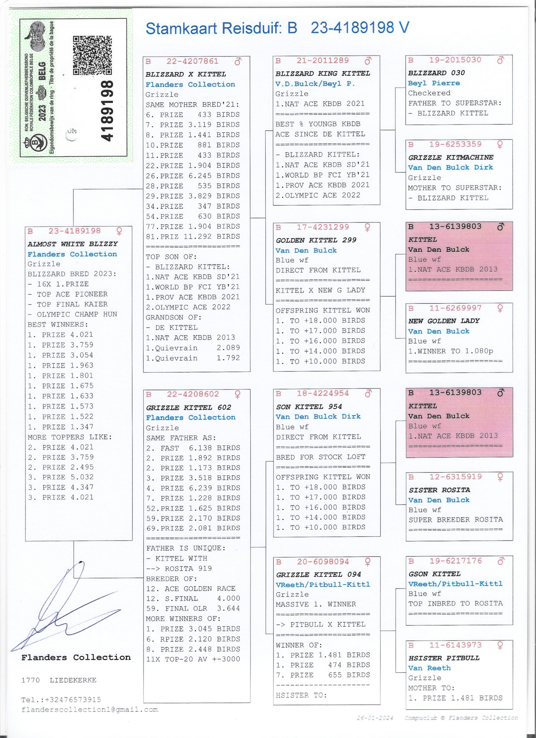 Direct daughter of BLIZZARD MACHINE x GOUDEN GRIJS. The grandparents of BLIZZARD KING KITTEL: