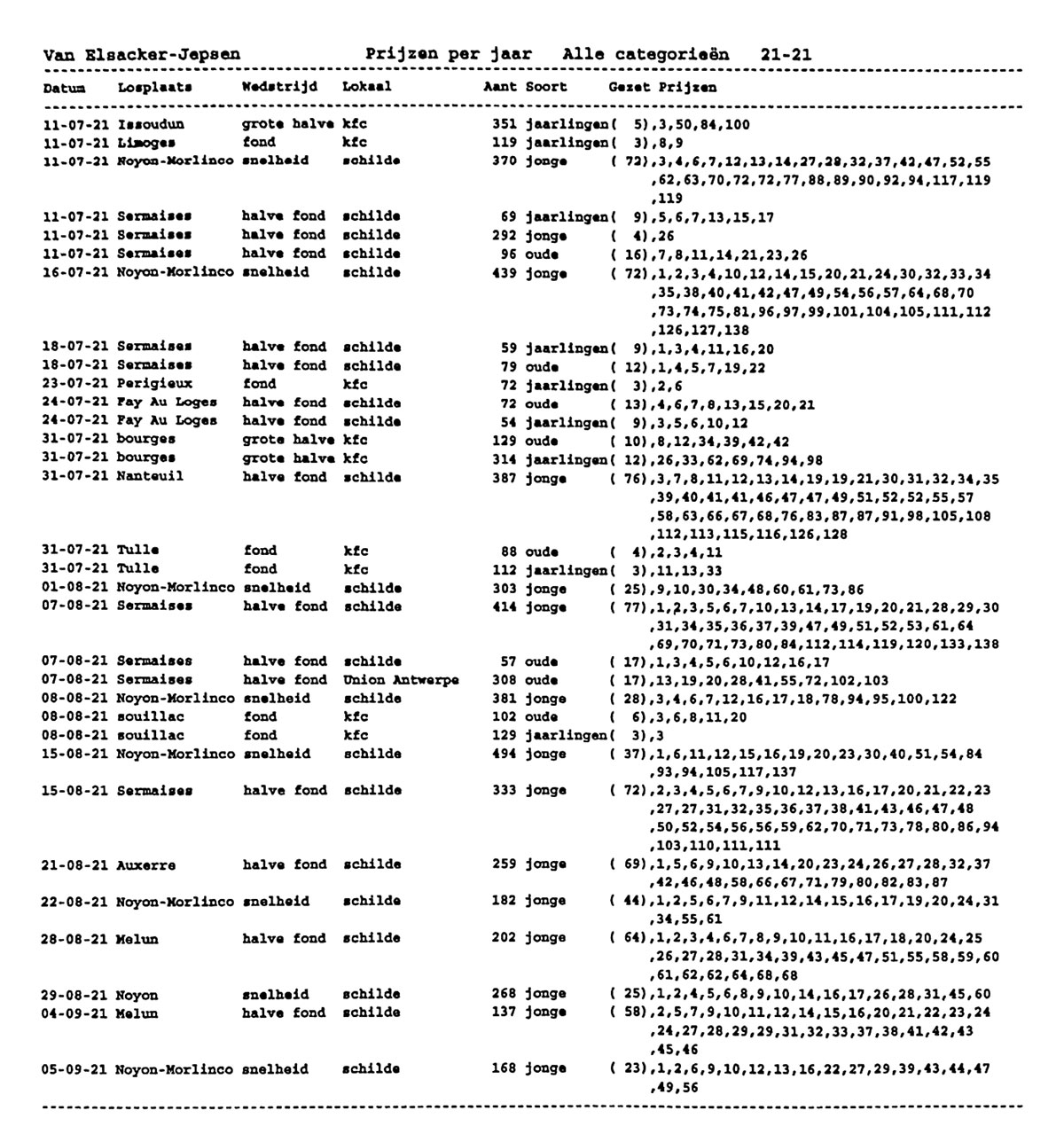 1. Acepigeon Great Middledistance Old Birds Kempische Fondclub (KFC)
