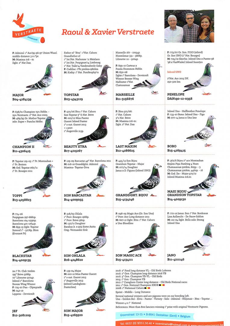 For several decades Raoul & Xavier Verstraete have been topfanciers racing from the city of Oostakker, Belgium.